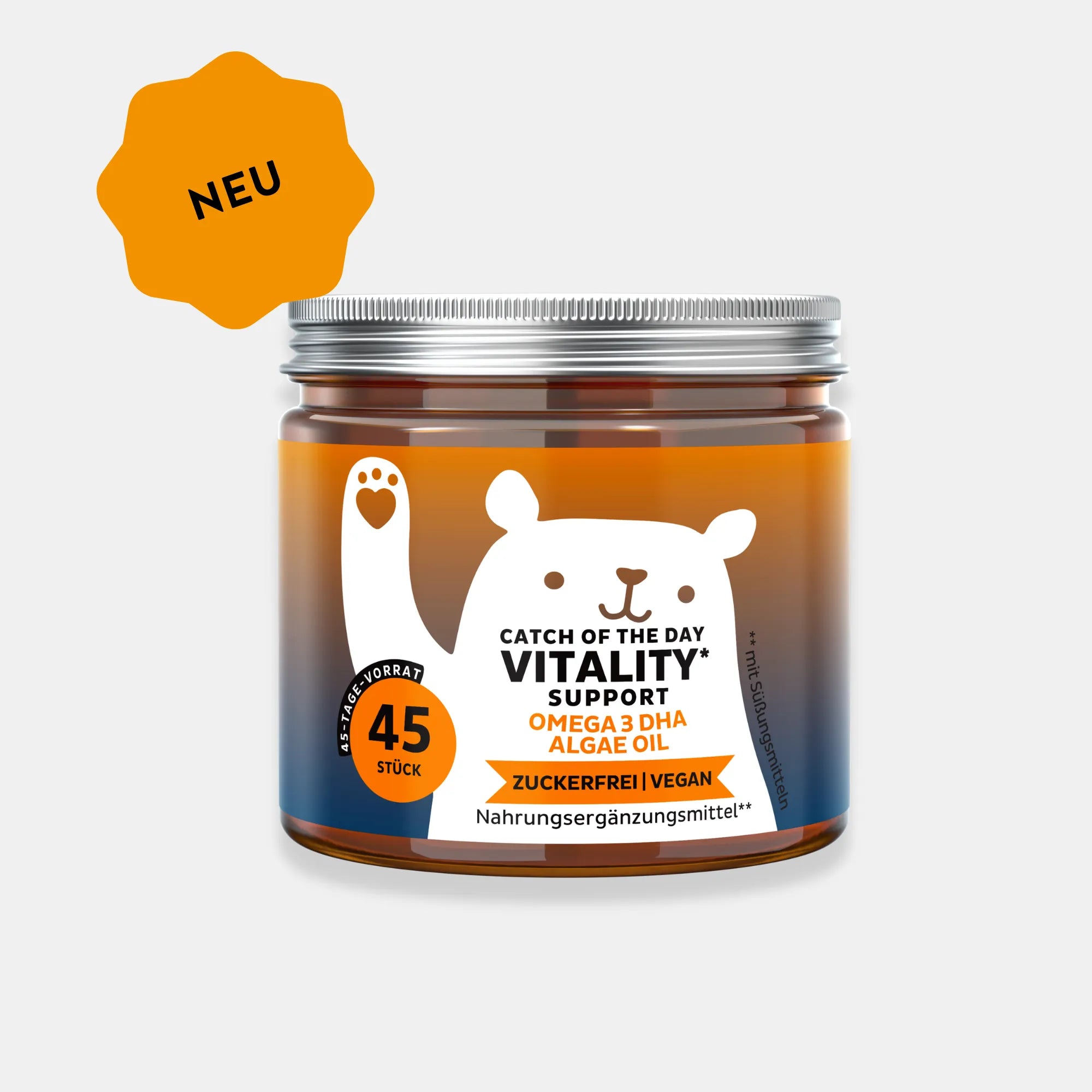 Auch die Kleinen kommen nicht zu kurz! Unsere speziell für Kinder entwickelte Nahrungsergänzung in Gummibärchenform schmeckt nicht nur lecker sondern ist auch reich an Vitaminen und Mineralstoffen. Vitamin D z.B. wird für ein gesundes Wachstum und eine gesunde Entwicklung der Knochen bei Kindern benötigt. Zink und B-Vitamine tragen zur normalen kognitiven Funktion und zur Unterstützung des Nervensystems bei.