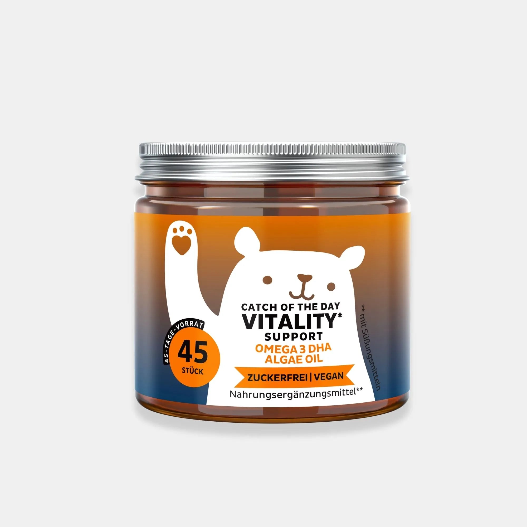 Auch die Kleinen kommen nicht zu kurz! Unsere speziell für Kinder entwickelte Nahrungsergänzung in Gummibärchenform schmeckt nicht nur lecker sondern ist auch reich an Vitaminen und Mineralstoffen. Vitamin D z.B. wird für ein gesundes Wachstum und eine gesunde Entwicklung der Knochen bei Kindern benötigt. Zink und B-Vitamine tragen zur normalen kognitiven Funktion und zur Unterstützung des Nervensystems bei.