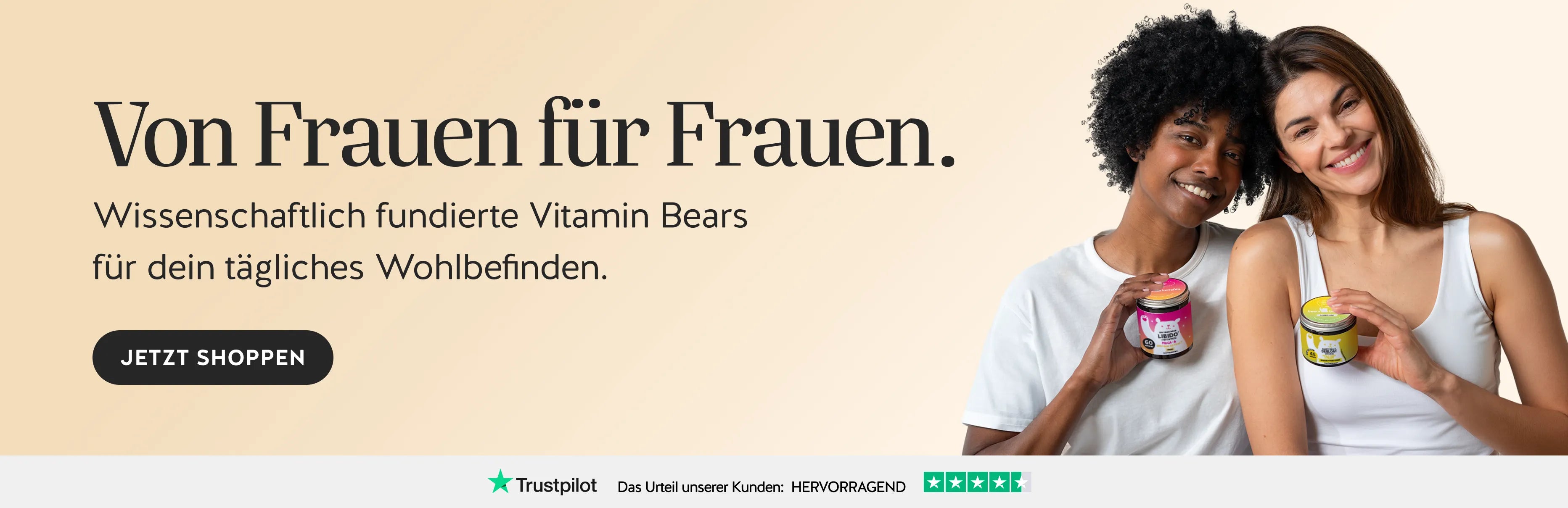 Von Frauen für Frauen, lautet unsere Devise bei den Produkte für die Frauengesundheit. Diese wurden speziell auf die Bedürfnisse von Frauen abgestimmt. Hast Du Probleme mit PMS? Unsere Bärchen mit Vitamin B6 können Dich hier unterstützen, da dies zur Regulierung der Hormontätigkeit beiträgt. Oder befindest Du Dich bereits in den Wechseljahren? Auch hier kann Dich Vitamin B6 unterstützen, da es unter anderem zur normalen psychischen Funktion und einer normalen Funktion des Nervensystems beiträgt. Unsere Vitamine und Mineralstoffe sind darauf ausgelegt, Deinem Körper zu helfen und ihn mit den wichtigen Vitaminen und Mineralstoffen zu unterstützen. Wir wissen aber auch, dass Kinderwunsch und Stillzeit zwei weitere große Themen im Leben einer Frau sind. Unsere Bärchen mit Inhaltsstoffen wie Folsäure das zum Wachstum des mütterlichen Gewebes während der Schwangerschaft beiträgt und Eisen das zu einer normale Bildung von roten Blutkörperchen und Hämoglobin beiträgt, können Dir helfen, Deinen Körper zu unterstützen.