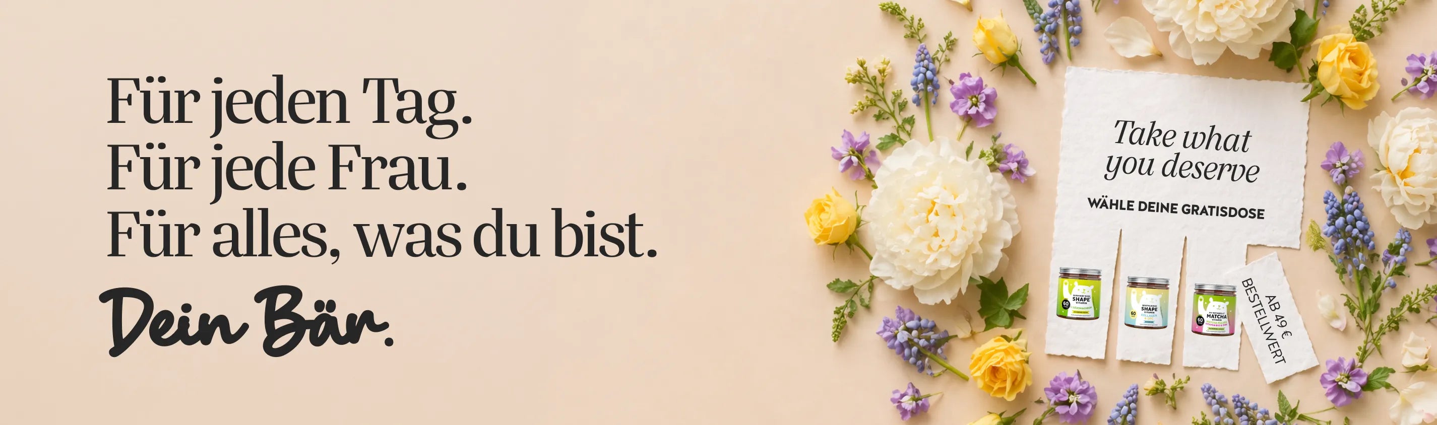 Im Prinzip können die Bärchen zusammen eingenommen werden, da unsere Produkte keine bekannten Wechselwirkungen haben.Wir empfehlen jedoch, die Kollagenbärchen (Born This Way & Bootylicious Shape) getrennt von den anderen Produkten einzunehmen, damit sich die Wirkung des Kollagens optimal entfalten kann. Bitte beachte: Wir empfehlen nicht, mehr als 5 verschiedene Sorten gleichzeitig einzunehmen. Falls du mehrere Produkte kombinieren möchtest, kontaktiere uns am besten vorab, damit wir dir ggf. eine angepasste Dosierung basierend auf deiner Auswahl empfehlen können.