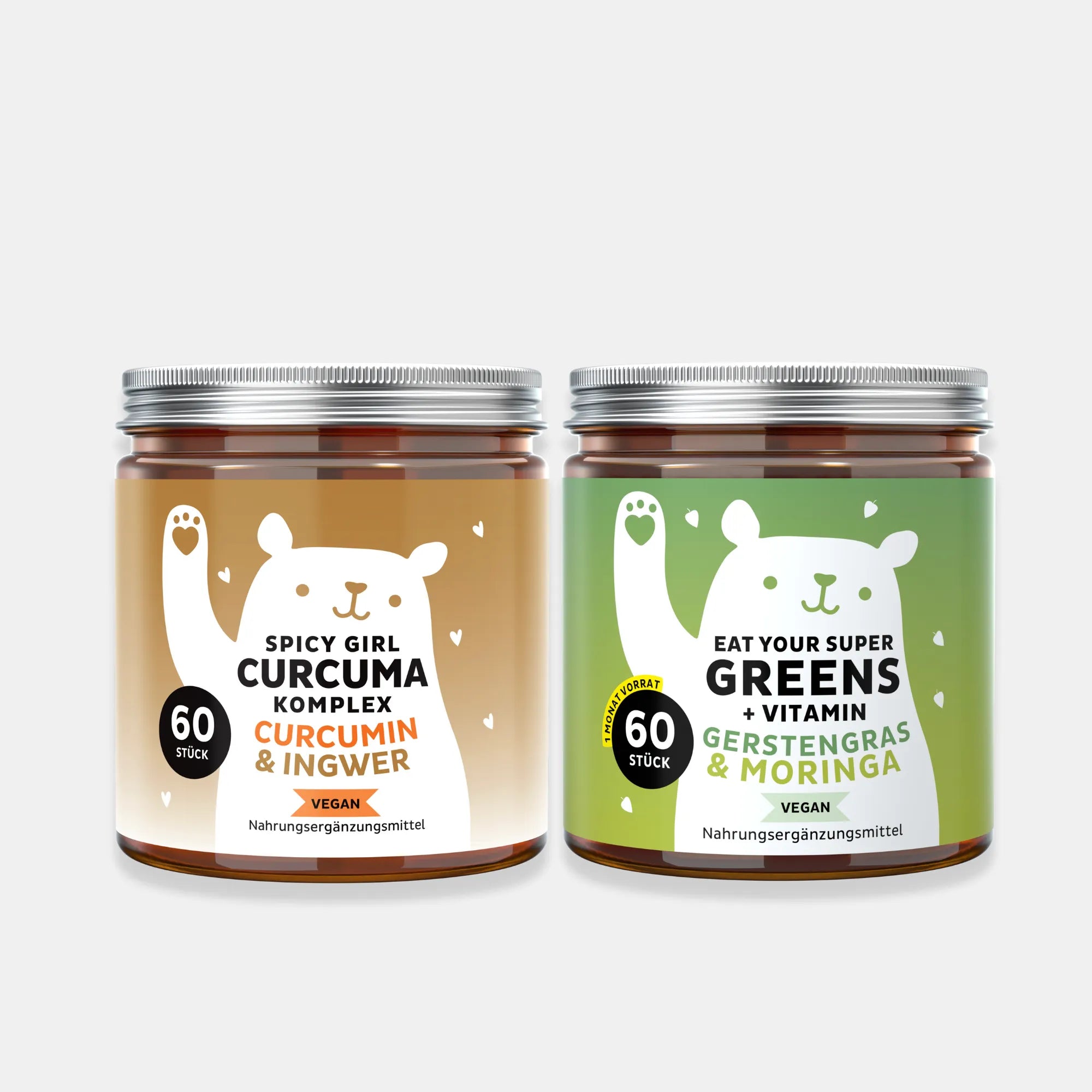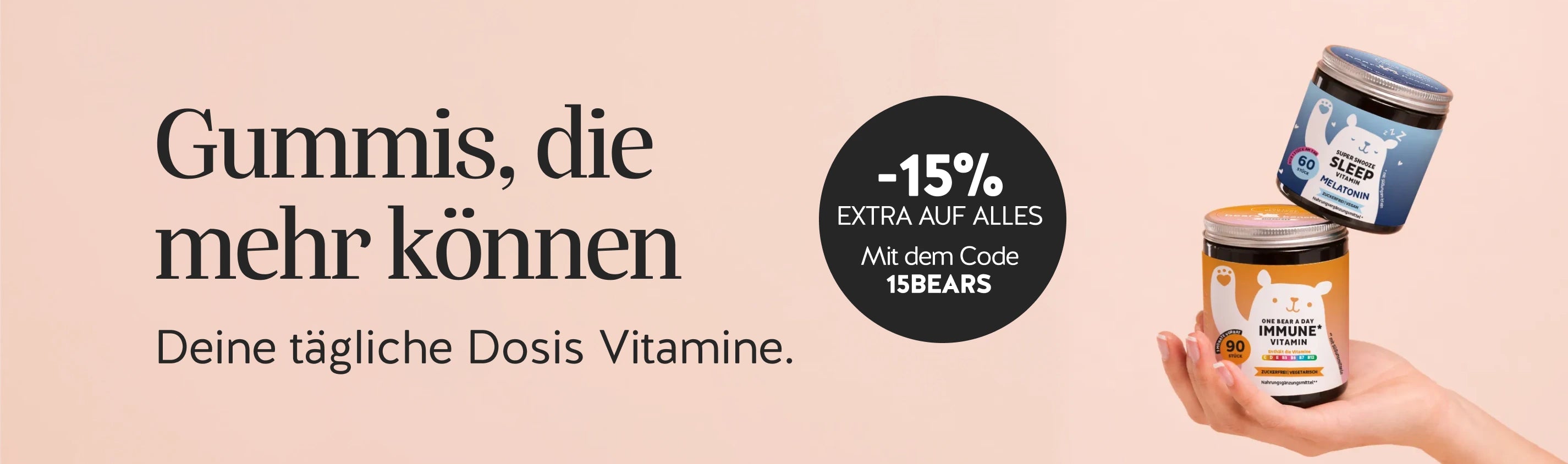 Im Prinzip können die Bärchen zusammen eingenommen werden, da unsere Produkte keine bekannten Wechselwirkungen haben.Wir empfehlen jedoch, die Kollagenbärchen (Born This Way & Bootylicious Shape) getrennt von den anderen Produkten einzunehmen, damit sich die Wirkung des Kollagens optimal entfalten kann. Bitte beachte: Wir empfehlen nicht, mehr als 5 verschiedene Sorten gleichzeitig einzunehmen. Falls du mehrere Produkte kombinieren möchtest, kontaktiere uns am besten vorab, damit wir dir ggf. eine angepasste Dosierung basierend auf deiner Auswahl empfehlen können.