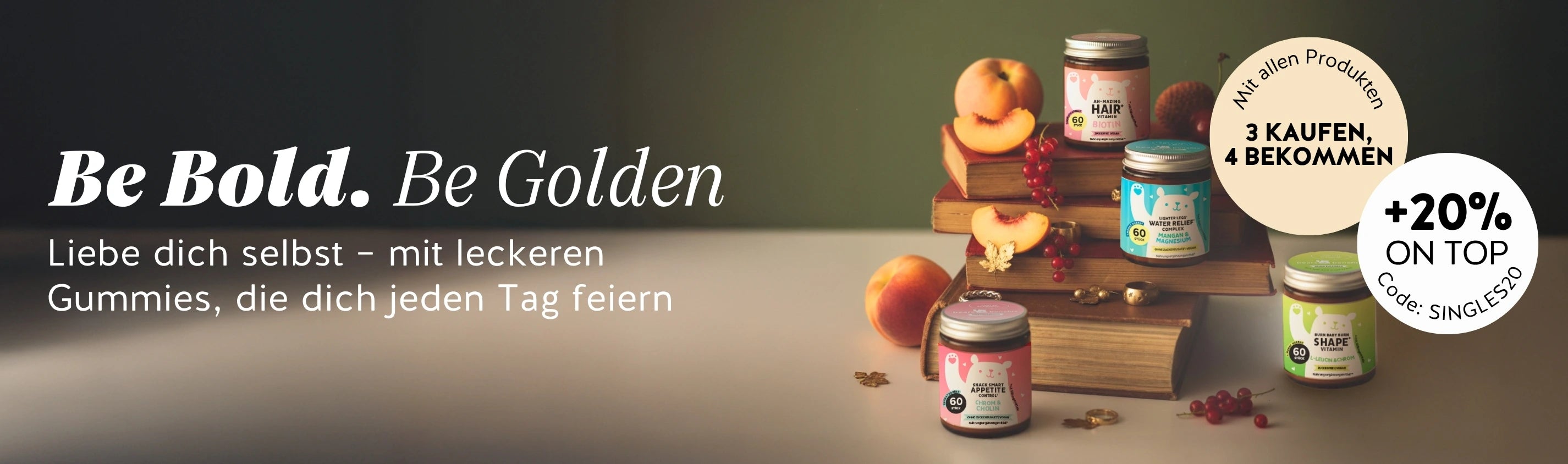 5er Bundle “Komplett in Form Set” von Bears with Benefits bestehend aus den Burn Baby Burn Shape Vitamins mit Grünteeblattextrakt, den Bootylicious Shape Vitamins mit Collagene und OPC, den Trust your Gut Vitamins mit Apfelessig, den One in a Billion Gut Vitamins mit Bacillus coagulans und Inulin und den Eat your Super Greens mit Gerstengras.Diese Inhaltsstoffe und Nährstoffe stecken in den Burn Baby Burn Shape Vitamins von Bears with Benefits: Biotin, Zink, Chrom, L-Leucin und Grünteeblattextrakt.